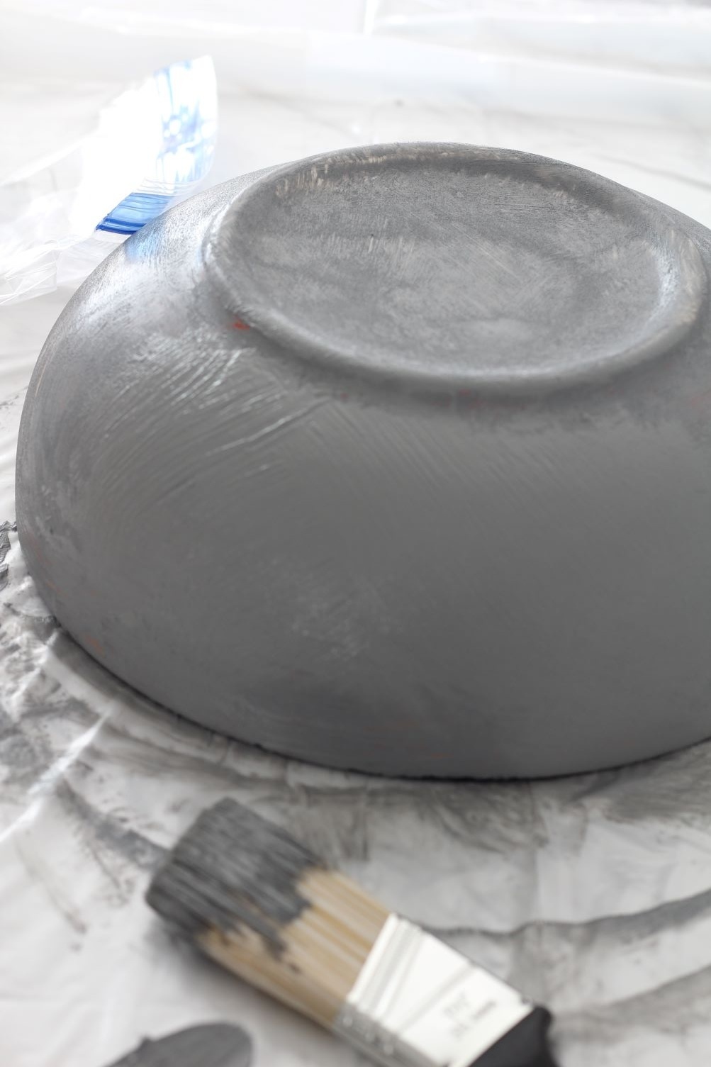 - Flip the bowl over and lay it on the plastic drop cloth