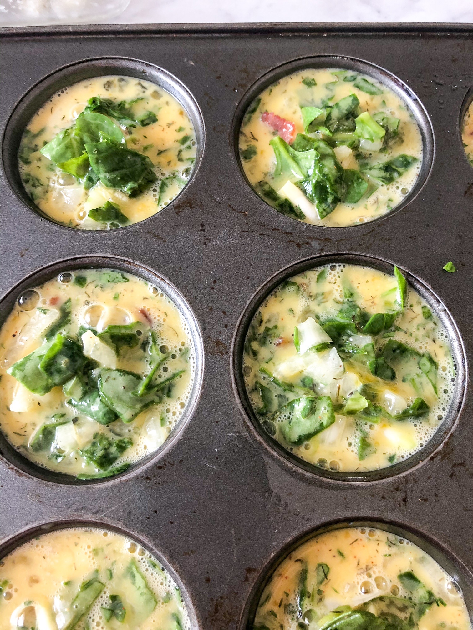 protein-packed egg muffins filled with crispy bacon, onions, hashbrowns, and spinach!