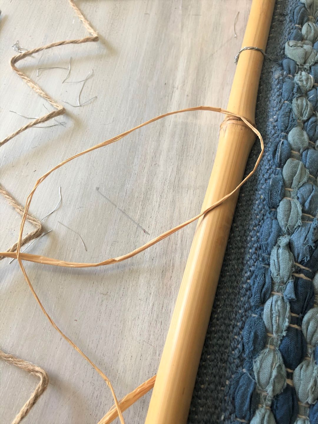 As for the wire in the middle? I chose to hide it with some raffia I had on hand since it was the exact color of my bamboo rod. You could definitely use more jute twine or yarn.