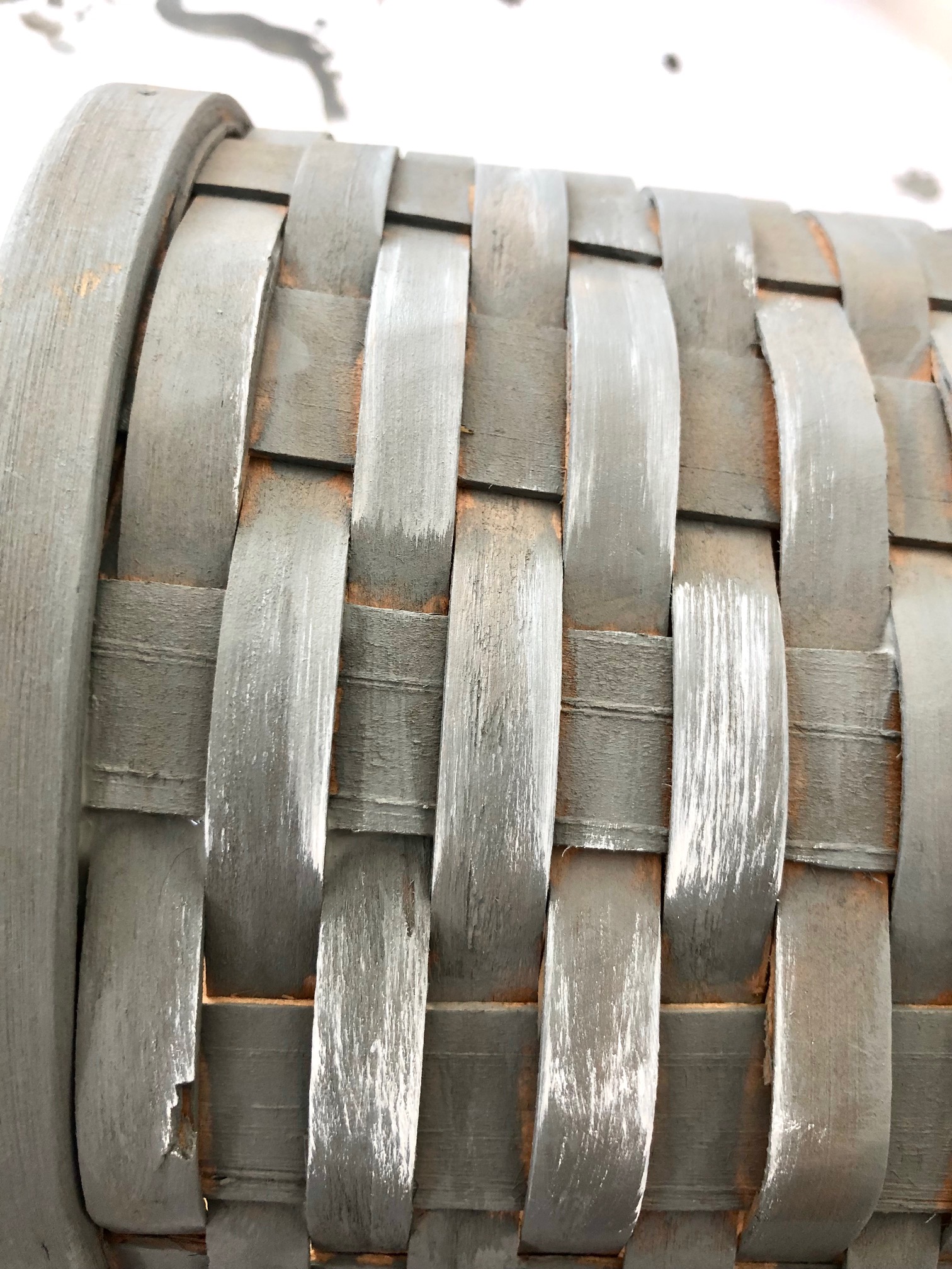 Once I had finished dry brushing the ivory on the basket, I let it dry for about 10 minutes. But after it had dried I felt like the basket was more white-washed than gray so I blended a bit more with my dry brush and added some more of the light gray paint that I diluted with some water.