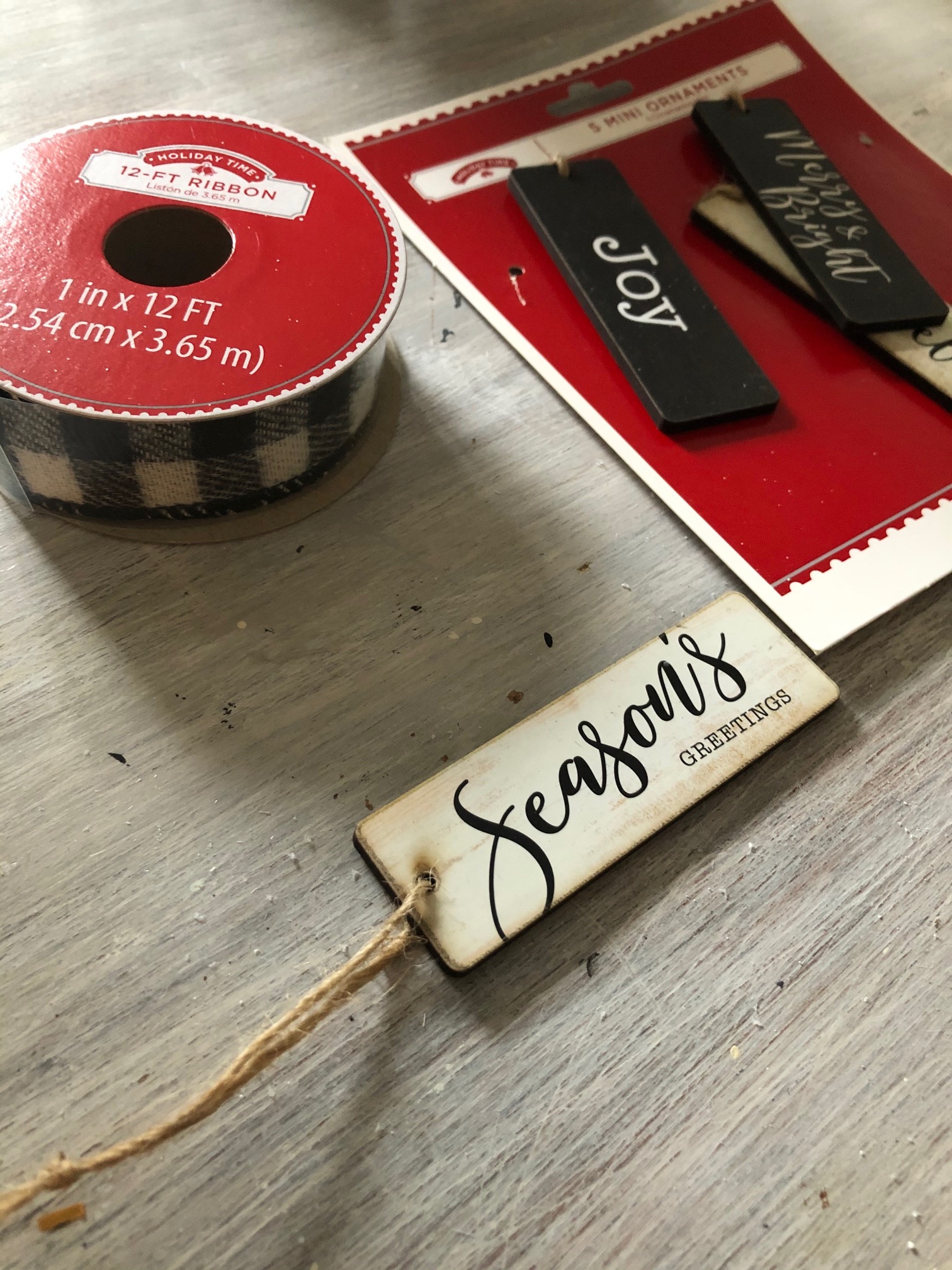 Wooden Script Ornaments (I found mine in the Christmas aisle at Walmart)
