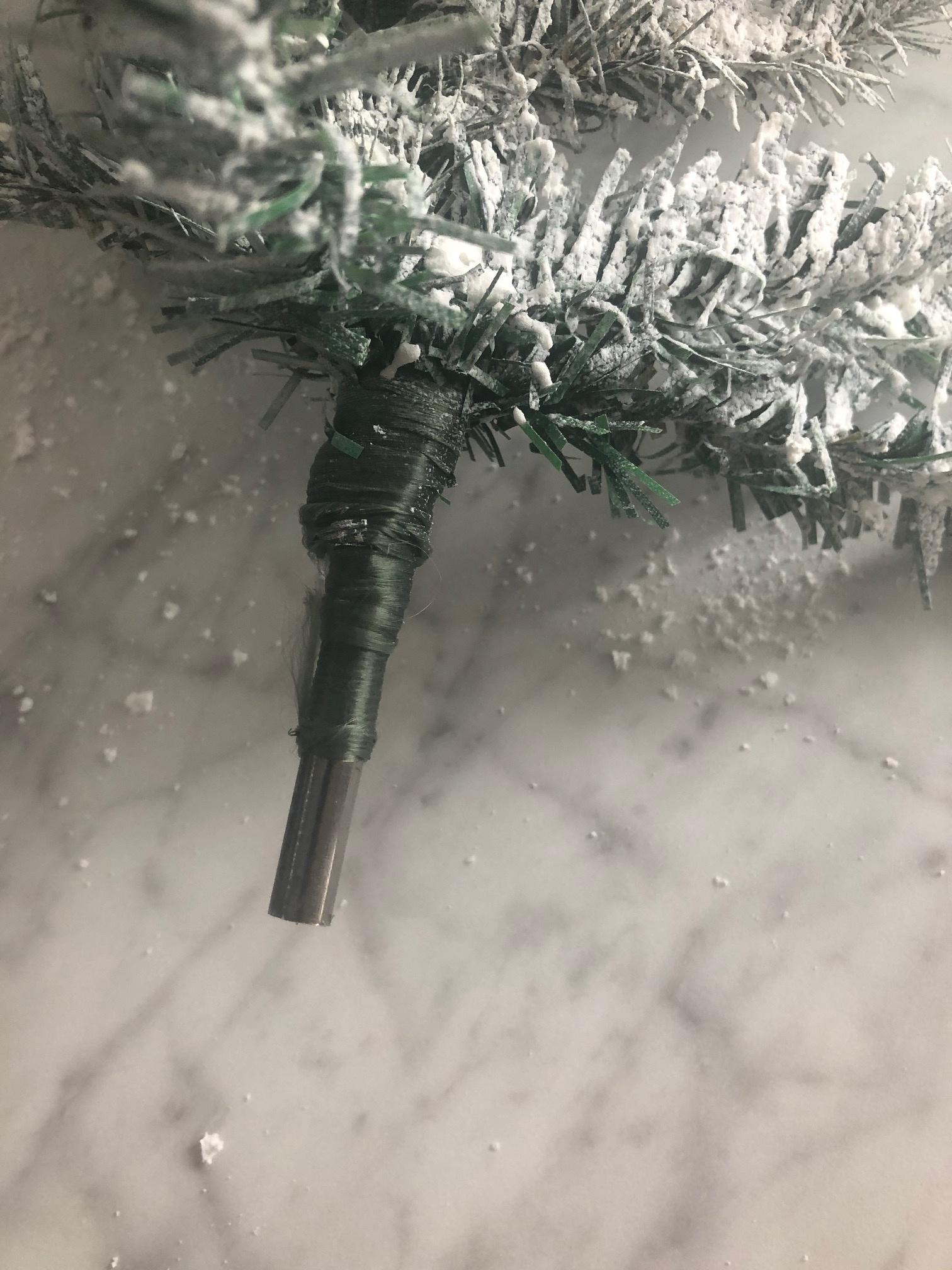 Again, I would definitely do this step outdoors and DEFINITELY not on a windy day!! I would also recommend you have something around and under the tree. I did NOT use a lot of this spray as it is messy. It will also NOT dry if put on heavily! Basically, I just sprayed a light coat on top and the underside of some of the branches just to give them that flocked look that’s so popular! Once I had the look I wanted I brought the trees inside and let them dry overnight.