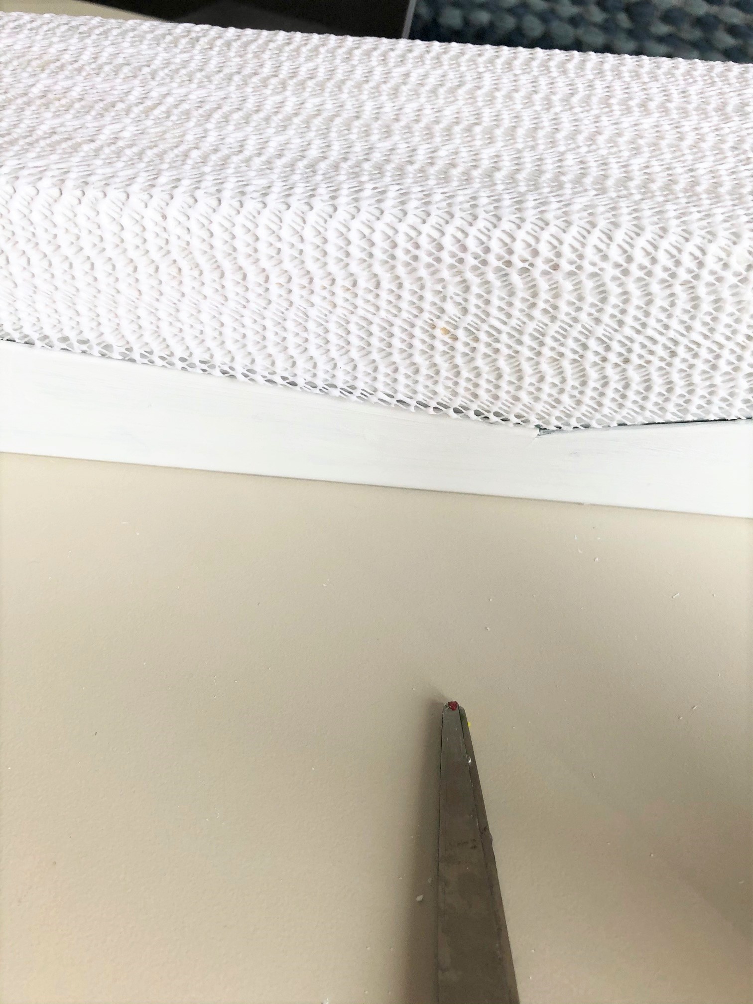 - Once I had the liner pressed in place, I used scissors and cut off the excess. Then I trimmed everything up and moved on to the next section.