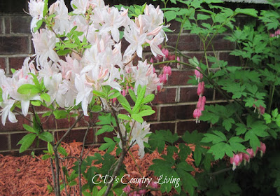 Right now this lovely white Azalea and pink bleeding heart are in bloom
