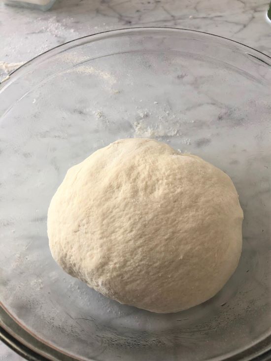 Once it is, the dough is ready to rise. For this process, I usually grease a good-sized bowl(that’s a lot of dough) and scoop my dough out of the mixer and into the bowl. Then I cover it with a towel and place it in my oven. (I have a bread-proofing option on my oven.) You can also just place it in any warm location.